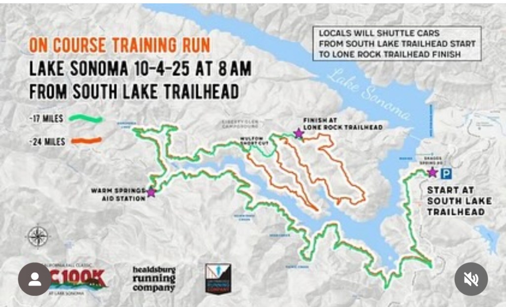 Our weekend long run shifts to Lake Sonoma for the California Fall Classic on-course training run in partnership with Healdsburg Running Company. This is a chance to preview key sections of the 100K and 55K course with full support and a community barbecue afterward. Whether you are racing or simply looking for a long supported run, this is a great opportunity to spend a big morning on the trails.