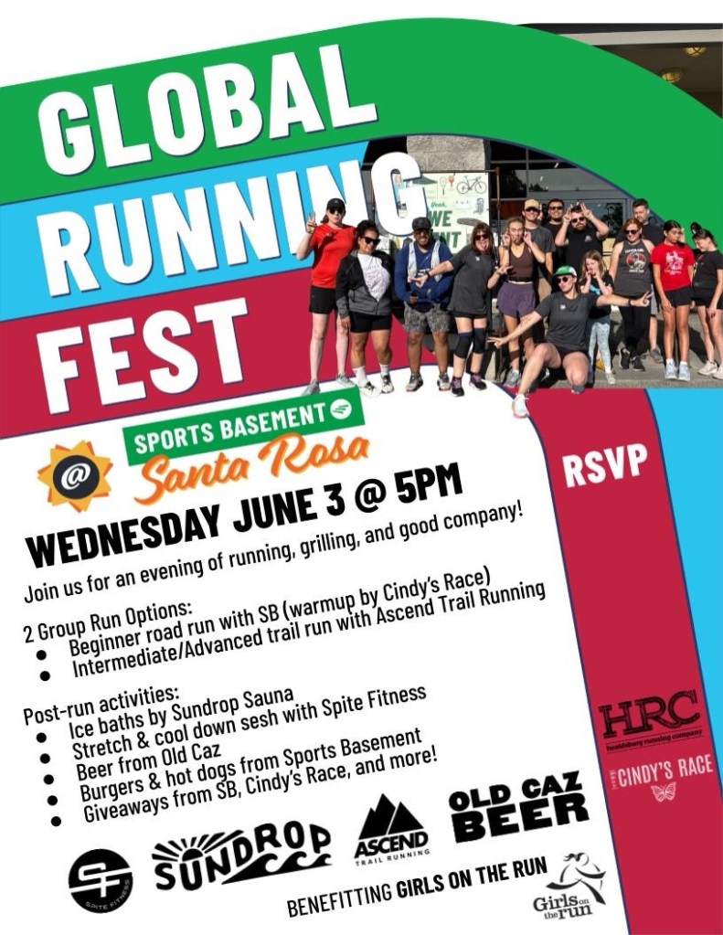 We will be joining Sports Basement on Wednesday, June 3 for their Global Running Day event in place of our normal Wednesday workout.
