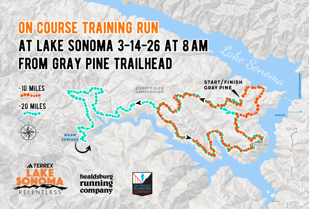 A quick correction from yesterday’s newsletter regarding this Saturday’s Lake Sonoma run. The starting location has been updated. We will meet at Gray Pine Trailhead, not Lone Rock. We will still be joining the broader community training morning with Healdsburg Running Company, though their group begins at 8:00 AM. Starting at 7:30 allows anyone who wants additional miles to get a bit of running in before linking up with that group.